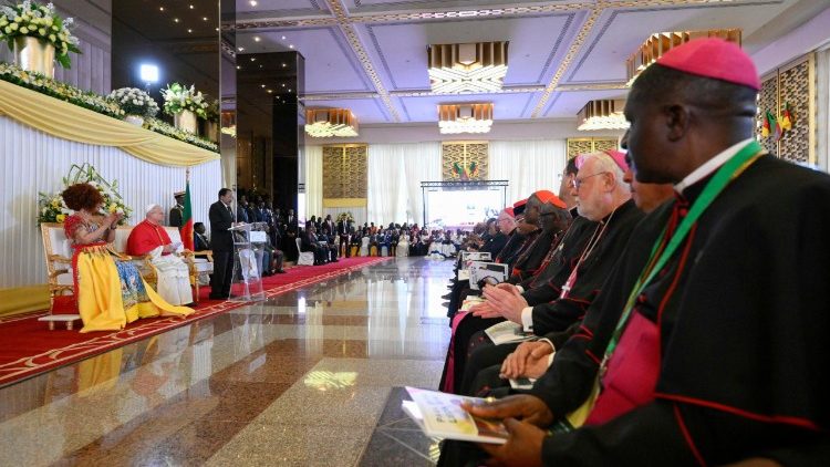 Ao iniciar sua intervenção, o Papa agradeceu a acolhida e destacou a identidade do país, frequentemente chamado de “África em miniatura” pela sua diversidade cultural, linguística e territorial: “Esta variedade não é uma fragilidade: é um tesouro. Constitui uma promessa de fraternidade e um sólido fundamento para a construção de uma paz duradoura.”